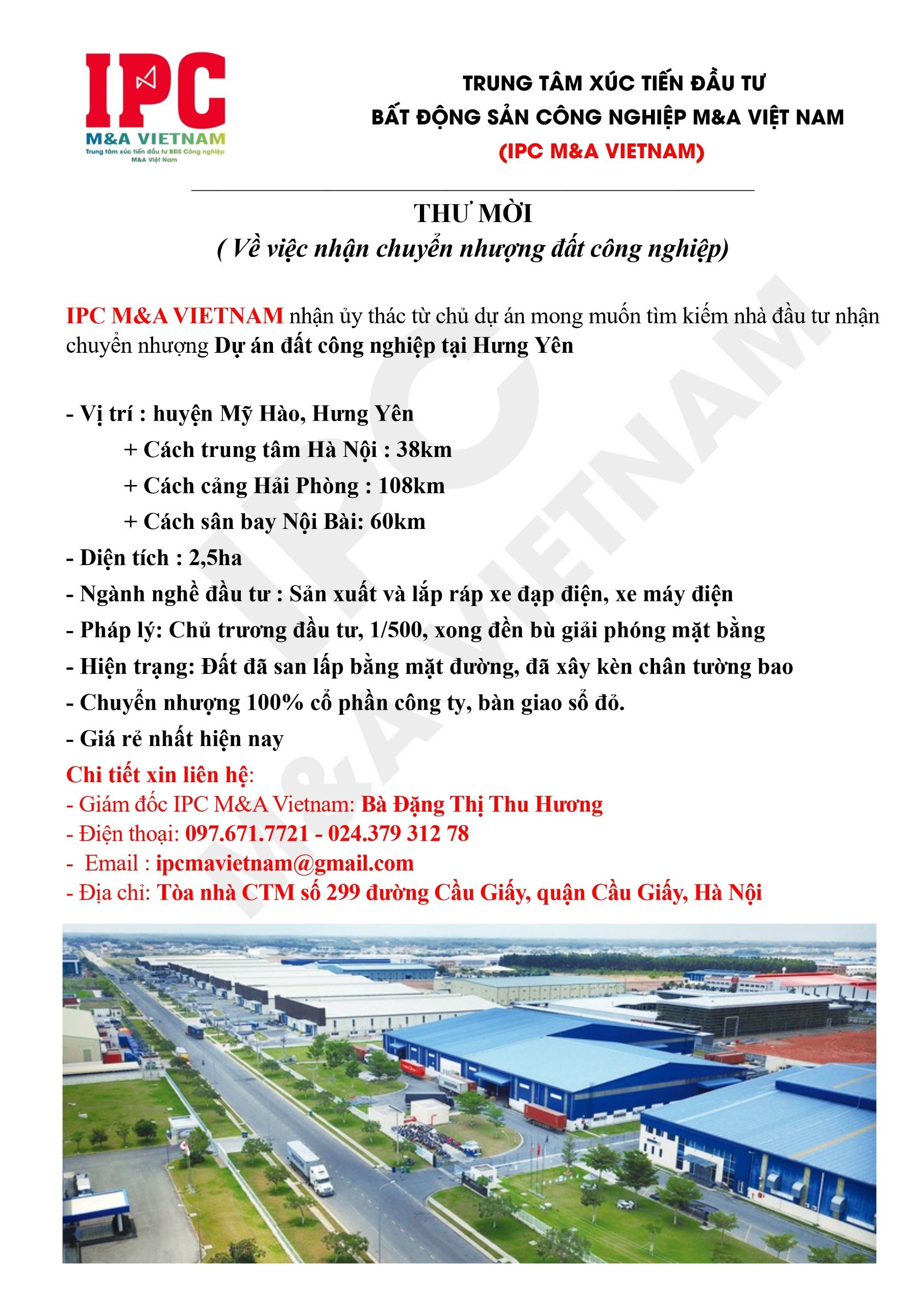 Chuyển nhượng Dự án đất công nghiệp tại Hưng Yên