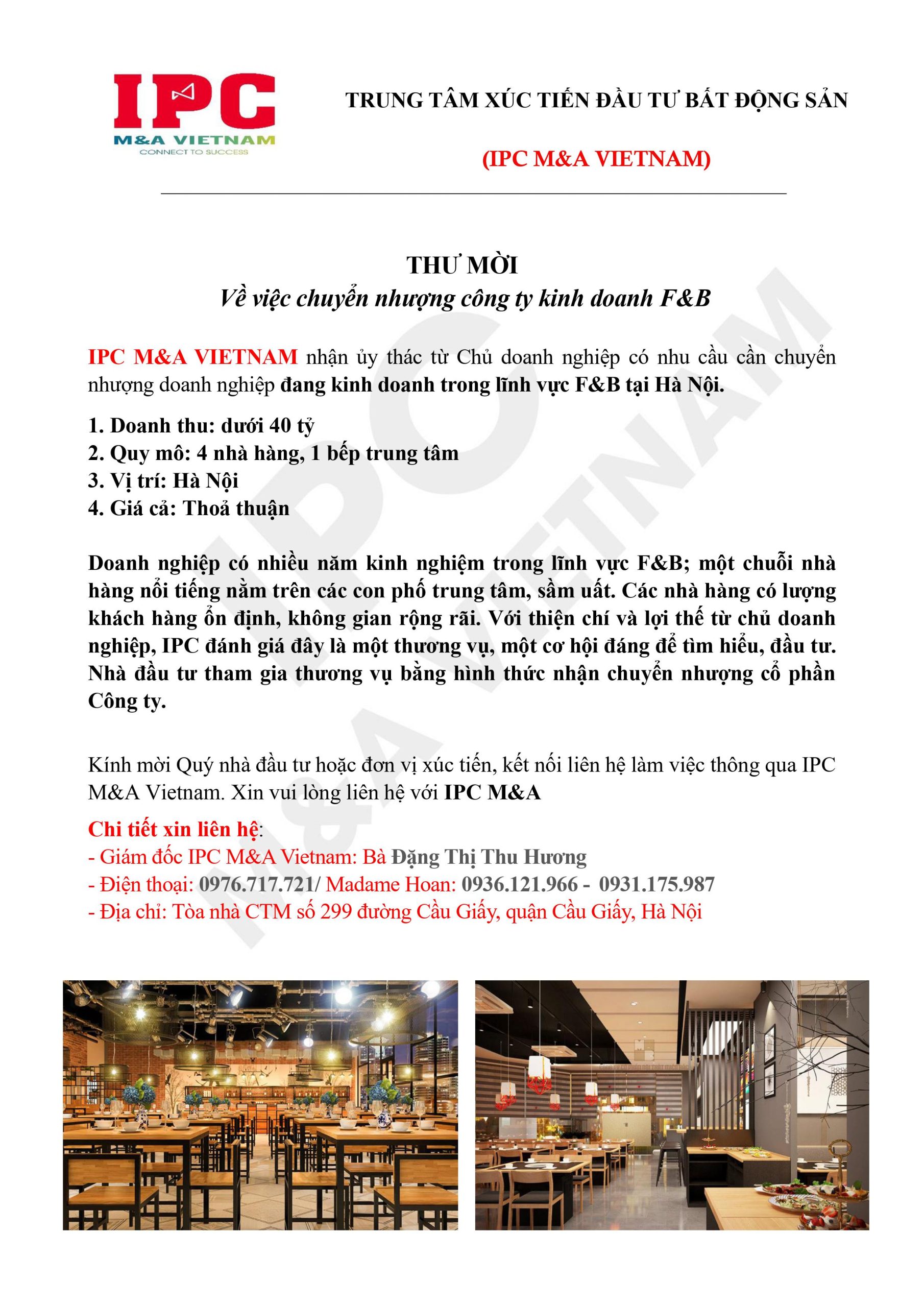 Hà Nội chuyển nhượng công ty kinh doanh F&B