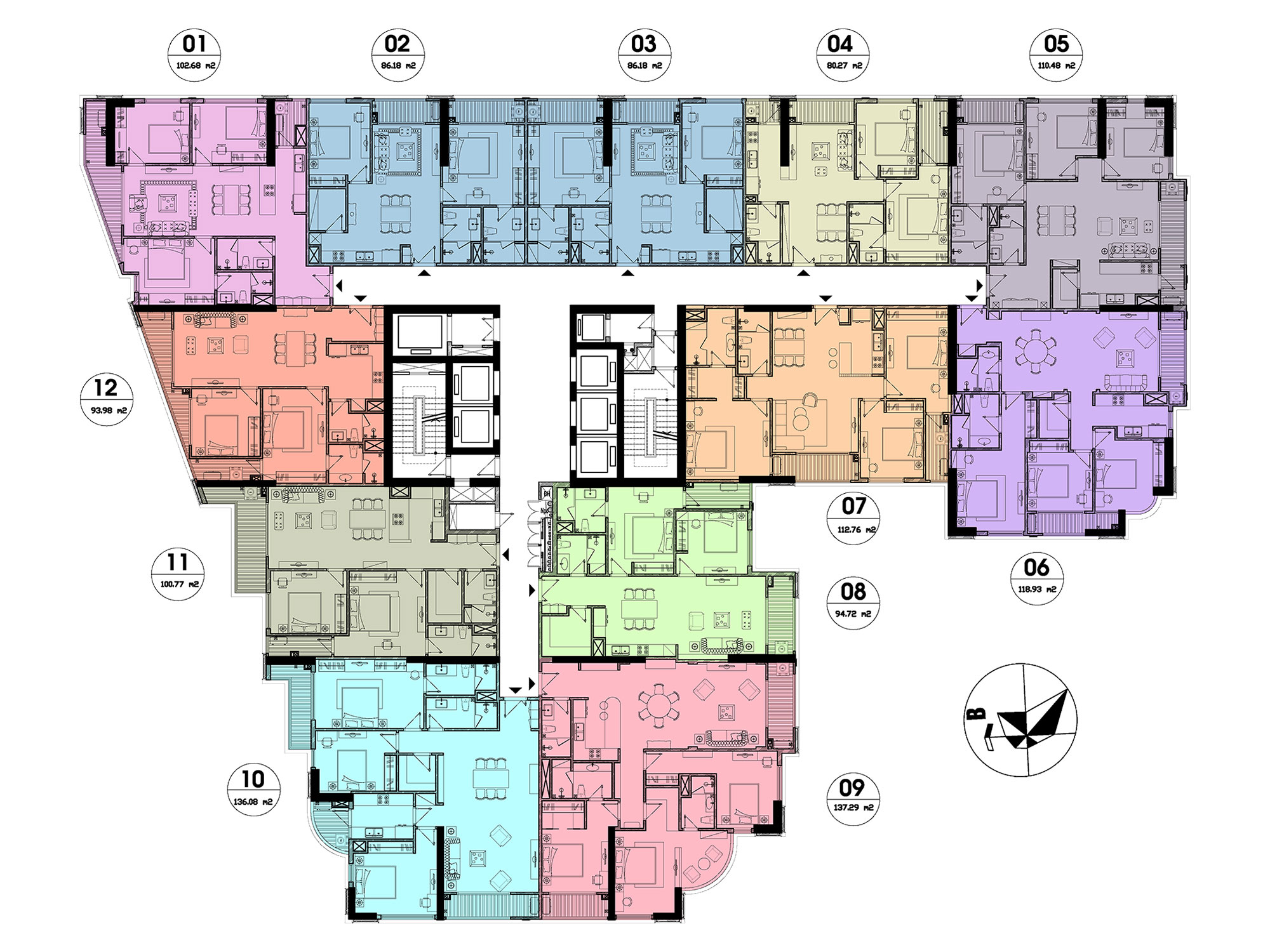 - Số lượng căn trên 1 mặt sàn: 12 căn