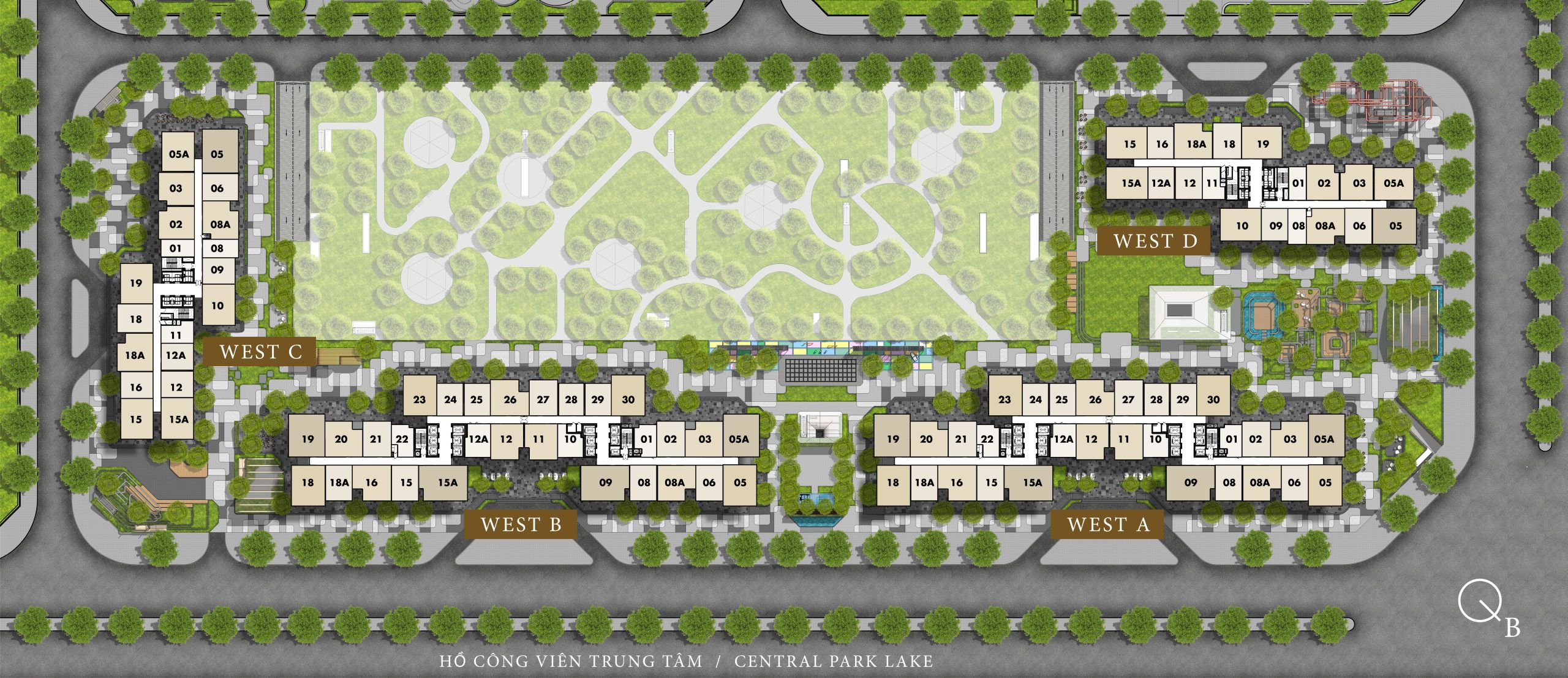 - Hướng Tây Bắc: Liền kề với cầu vượt nội khu số 1.