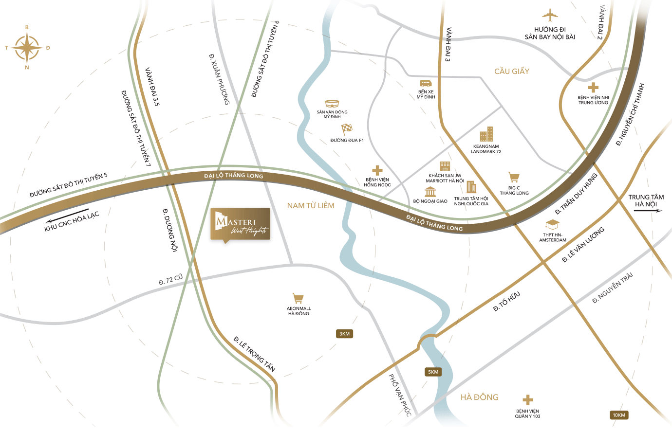 Ngoài ra, đây là tuyến đường giao thông huyết mạch giúp cư dân Masteri West Heights kết nối với các tuyến đường quan trọng như Lê Trọng Tấn, Đại Lộ Thăng Long, đường vành đai 3.5