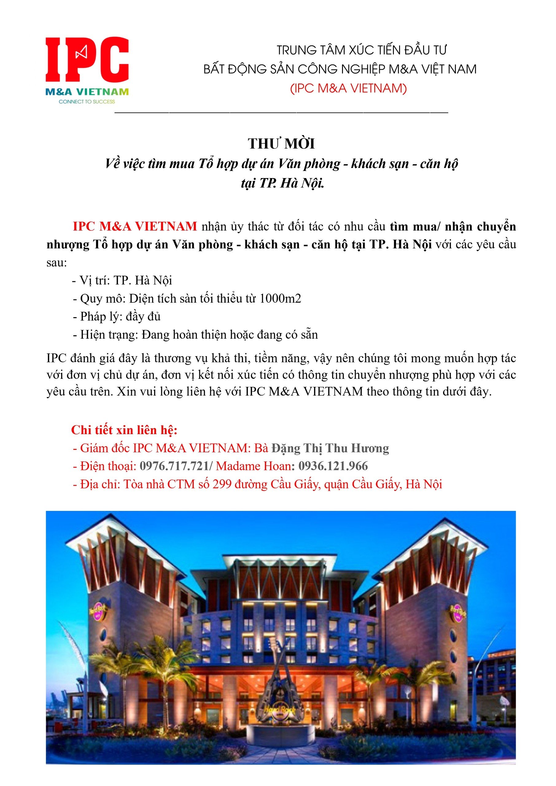 Tìm mua Tổ hợp dự án Văn phòng – khách sạn – căn hộ tại TP. Hà Nội
